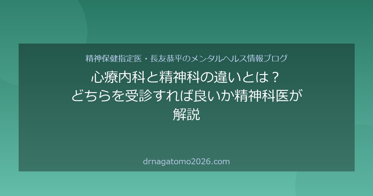 「心療内科と精神科、どちらに行けばいいのか分からない」というご質問は、初めて受診を考える方から非常によくいただきます。結論からいうと、どちらを受診されても問題ありません。ただし、それぞれの専門領域について知っておくと、より適切なケアにつながる場合があります。